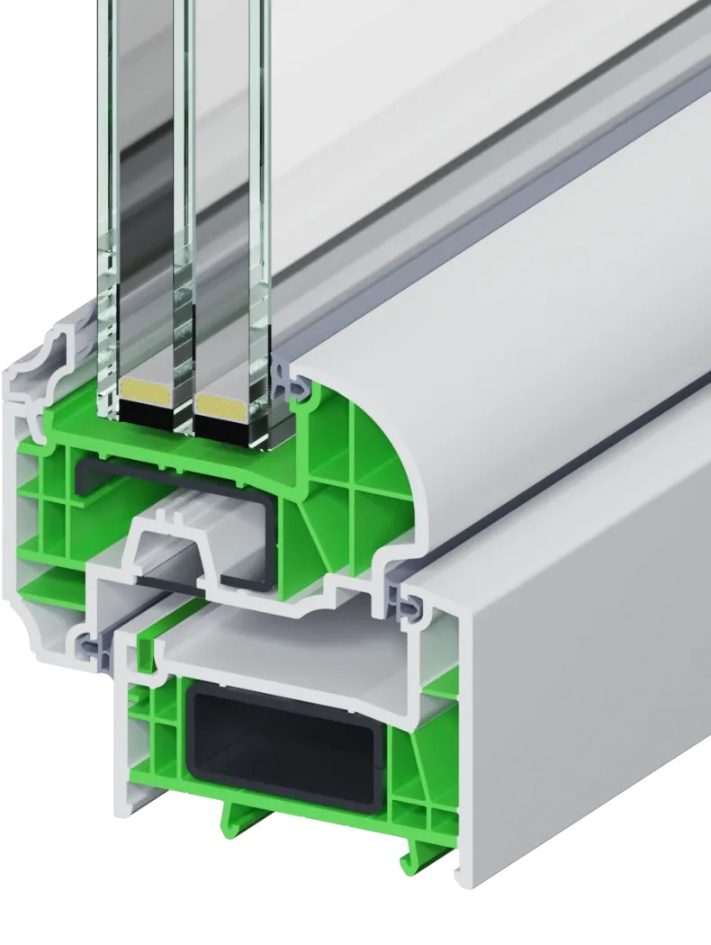 Melke Wide - лучшее решение для загородных домов. Благодаря эксклюзивному армированию толщиной 2 мм, нам удалось сохранить прочность конструкции и сделать ее еще более устойчивым к нагрузкам. Для Melke Wide подобран комплект фурнитуры от немецкого производителя, который идеально впишется в концепцию профиля с заниженной створкой.