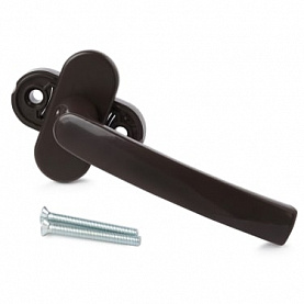 Ручка оконная металлическая с винтами STROXX RAL 8019 коричневая, штифт 35 мм.